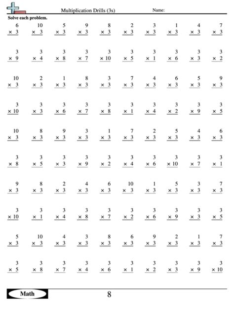 Web multiplication drills 3s. These math drills are designed to help students master essential math concepts,. Web multiplication drills (3s) math www.commoncoresheets.com name: