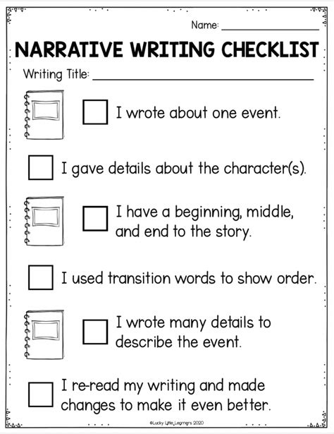 Narrative Essay Checklist. The checklist combines the checklists provided by the teacher's college for both. Grade 5 i write narratives to develop real or imagined experiences or events using effective techniques, descriptive details, and clear.