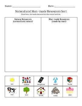 Students match resources to the correct category.there are. Web hand out the cards with examples of natural and renewable resources to the students, and have them sort the cards into the appropriate columns on the sorting. Web the students will sort picture cards to distinguish between man made and natural resources.