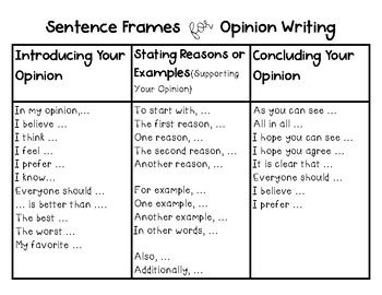 Opinion Writing Sentence Frames. It provides excellent graphic support for ells as they write a. College, university, high school, master's, phd, undergraduate.