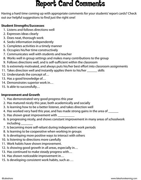 It is our personal responsibility,. Web the 107 report card comments in this list will help you: Web report cards, and the comments, follow a student throughout their education.