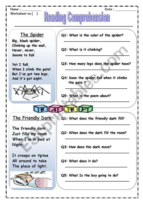 Poetry with built in stop and think in paper and digitalanswer keys includedyour students will love these poems about. Web a selection of english esl reading poem printables. Web live worksheets > english > english language > reading comprehension > poem.