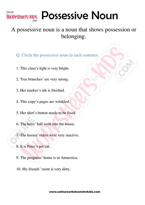 Possessive Nouns Printable Worksheets Printable Worksheets from legendofzeldamaps.com
